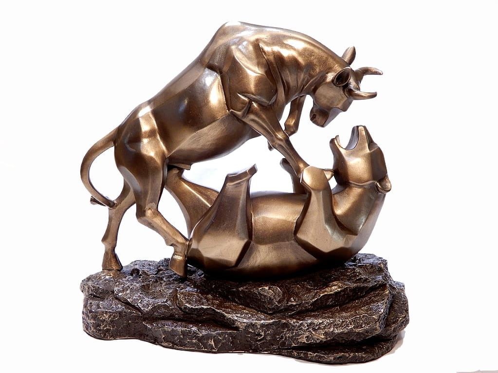 Realistyczna figurka przedstawia symboliczną walkę giełdową pomiędzy bykiem – znakiem hossy – oraz niedźwiedziem – symbolem bessy. Dynamiczna kompozycja jednoznacznie nawiązuje do świata rynków finansowych i inwestycji.
