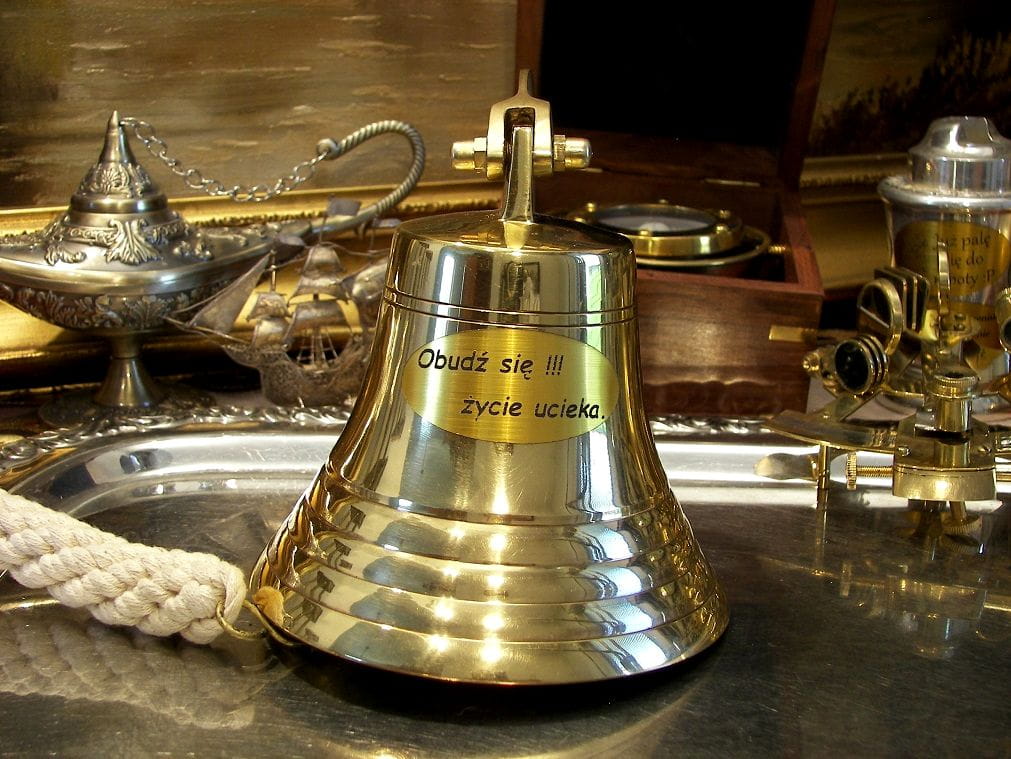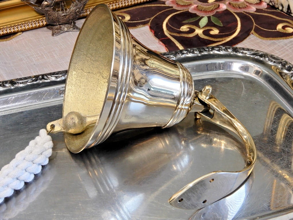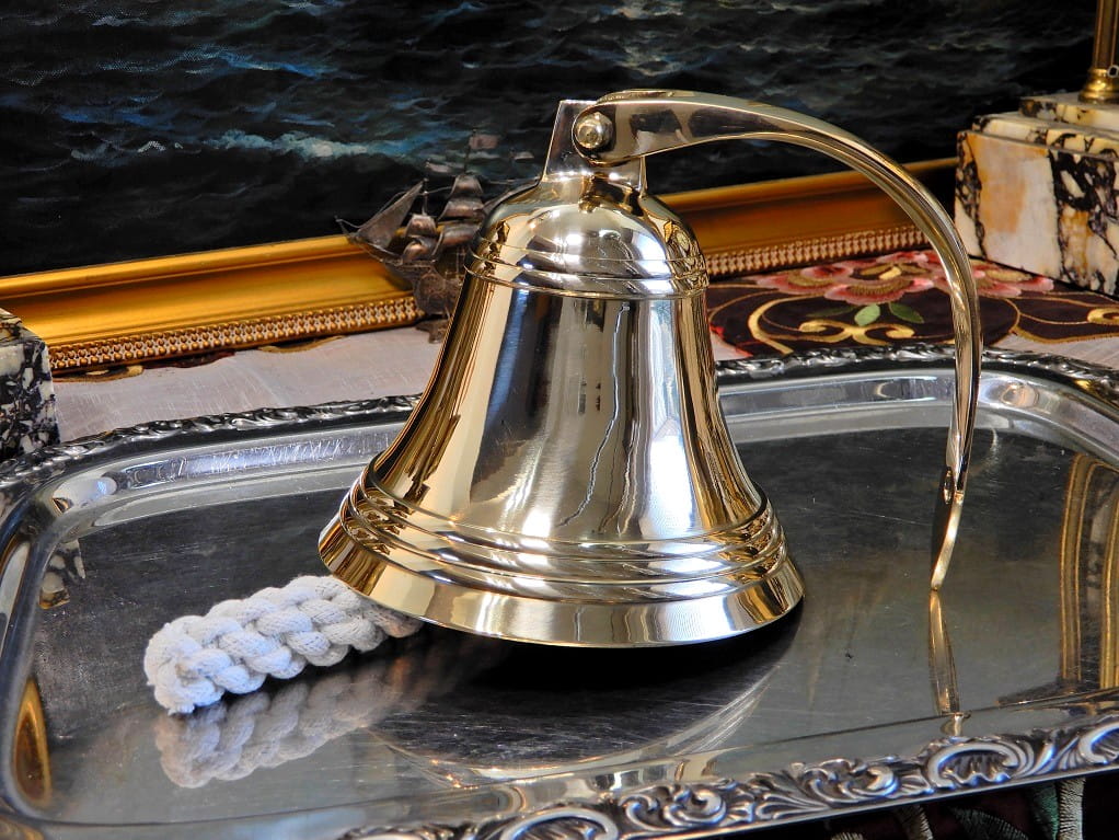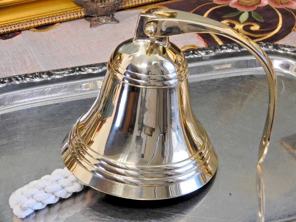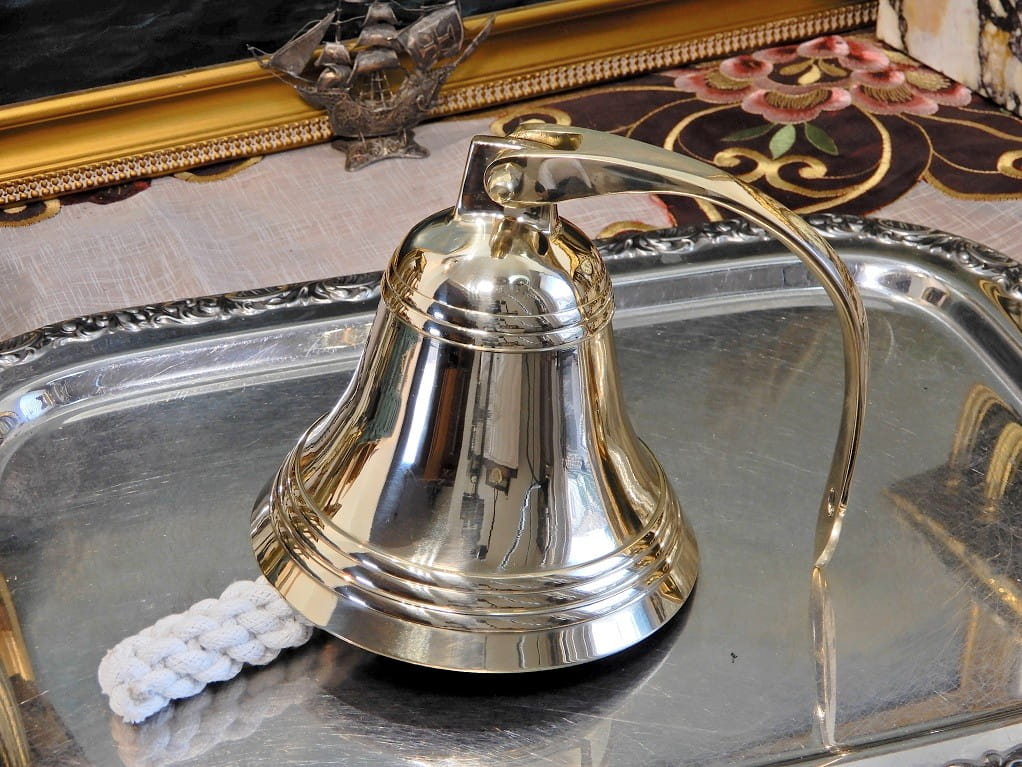 Dzwon złoty, mosiężny okrętowy, alarmowy na jacht, obóz, tawerna