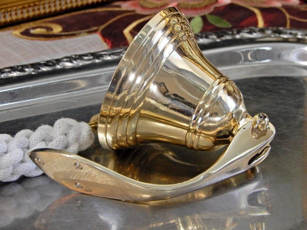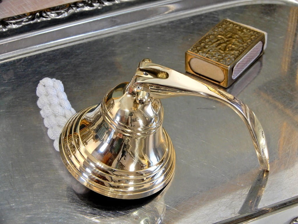 Dzwon mosiężny z ringabuliną naścienny z elementem mocującym. Dźwięk wspaniały, donośny i czysty.