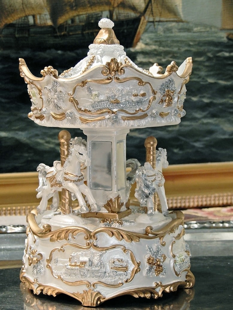 Świąteczna karuzela z pozytywką, koniki w starym stylu Vintage