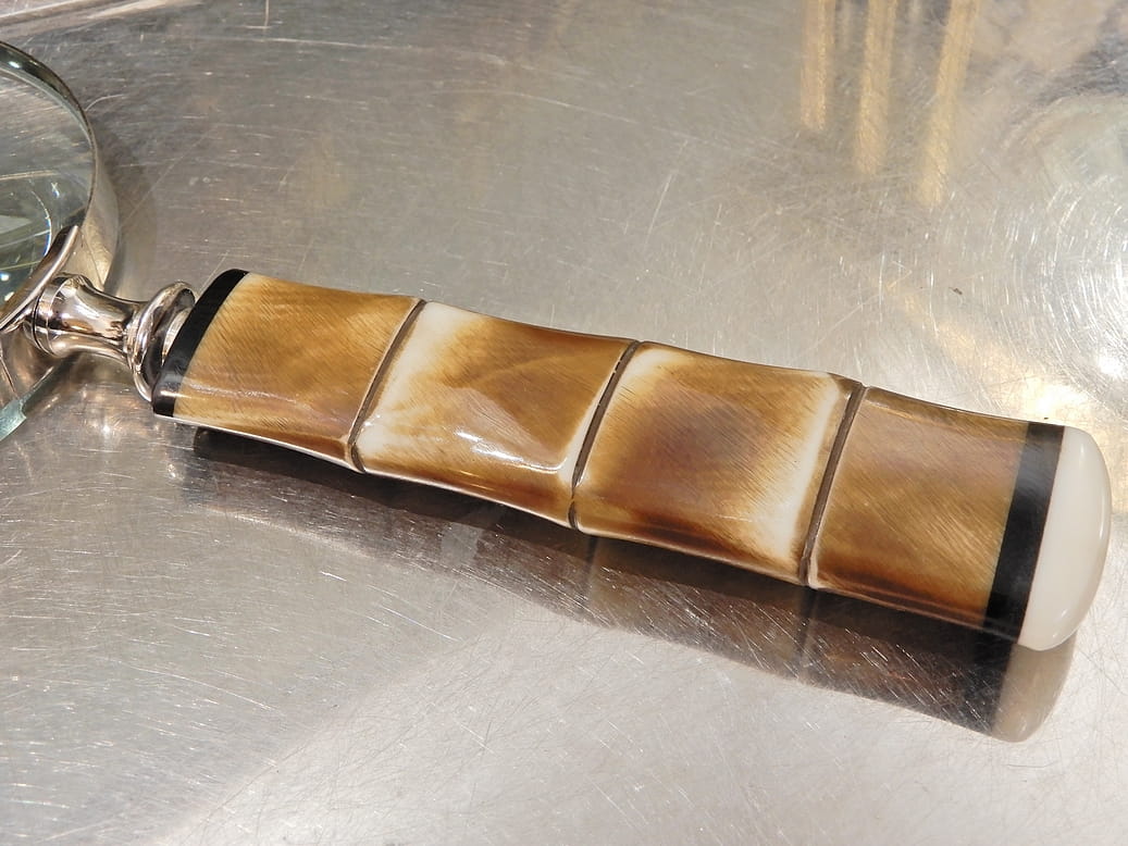 Zapraszam do kupna pięknej lupy, szkła powiększającego z cudowną rączką z kości . Bardzo mocno przybliża przybliża , nie jestem jednak w stanie precyzyjnie określić wartości. Lupa tworzy wspaniały klimat