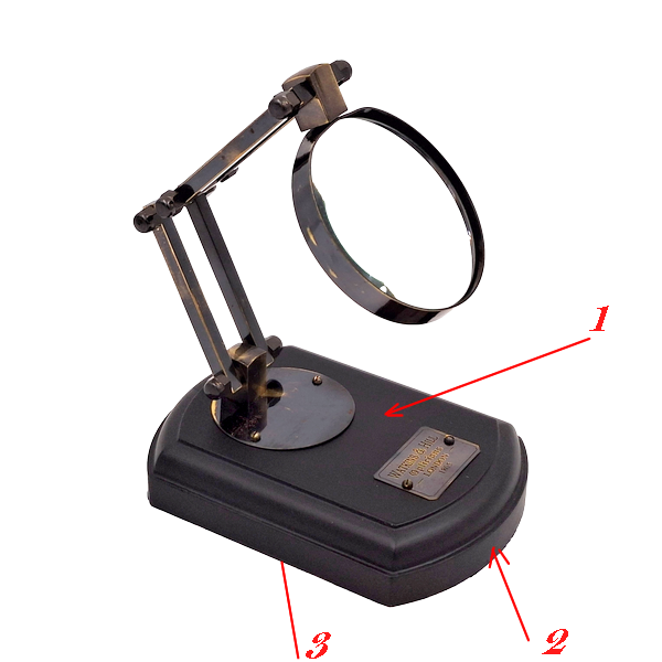 Możemy spersonalizować tę lupę. Można przytwierdzić płytkę z laminatu grawerskiego w złotym kolorze z Twoja dedykacją. Płytka może mieć dowolny kształt, wydaje się ,że owal byłby najlepszy. Można również umieścić płytkę na spodzie podstawy, po uprzednim dodaniu 4 filcowych podkładek. Wtedy dedykacja będzie bardziej dyskretna. Jest również możliwość wykonania napisu na taśmie grawerskiej i przymocowanie jej krawędzi z przodu przedmiotu.