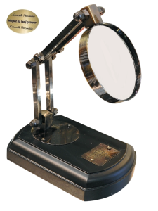 Zapraszam do zakupu, niezwykle efektownej lupy na przegubowym stelażu mosiężnym i podstawie drewnianej.