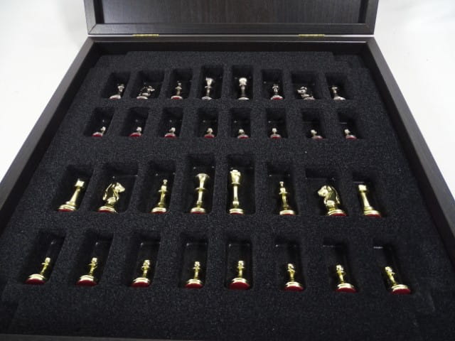Szachy zapakowane są w piękne, luksusowe, drewniane pudło. W środku starannie wykonana wypraska do układania i bezpiecznego przechowywania figur.