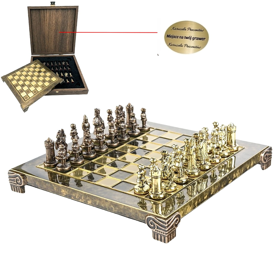Ekskluzywne szachy metalowe Bizancjum, szachownica 20x20cm