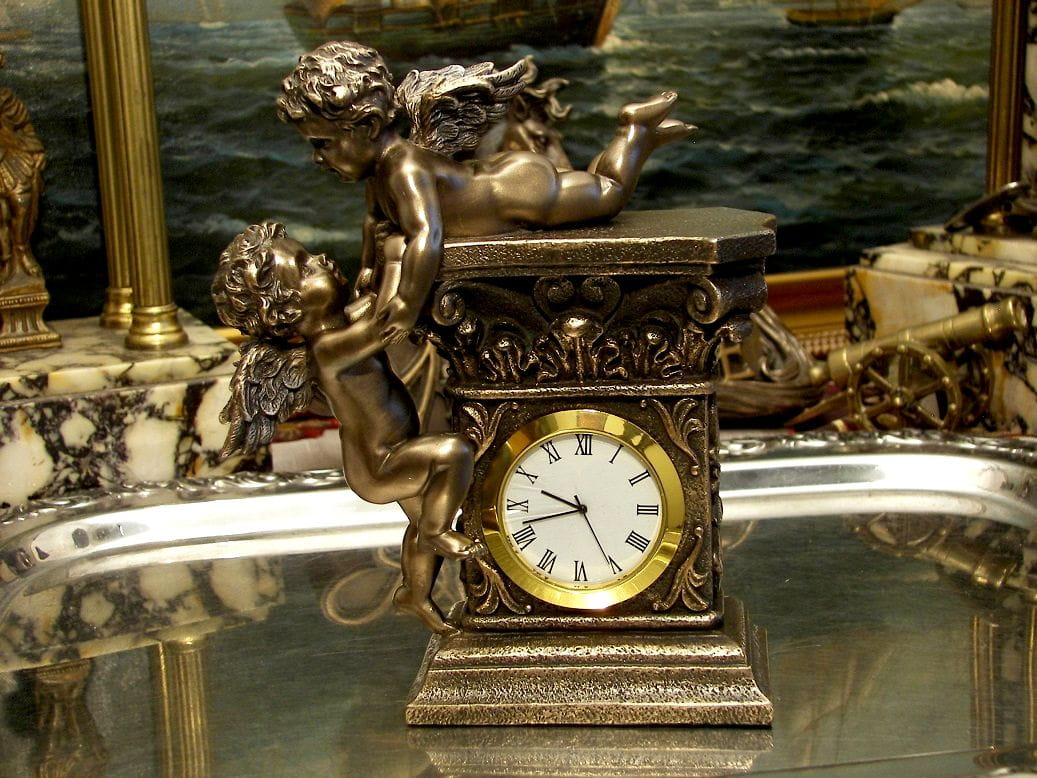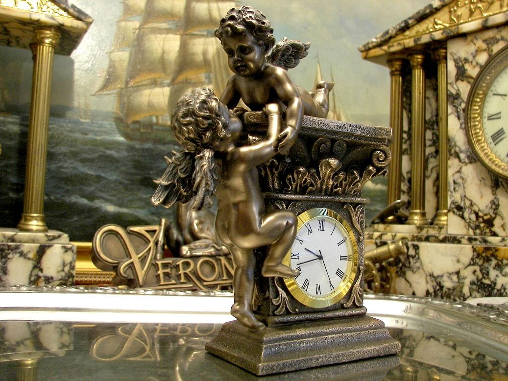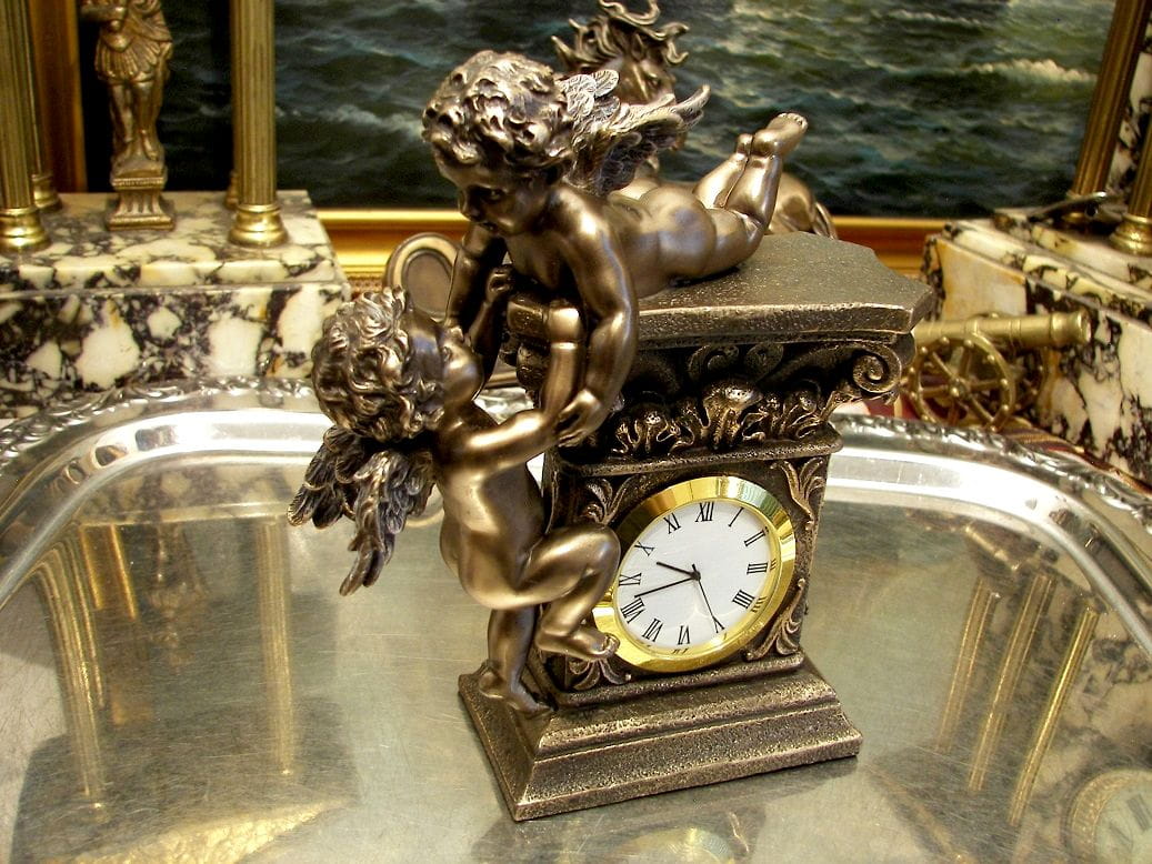 Uroczy zegar z amorkami w barokowym stylu na prezent