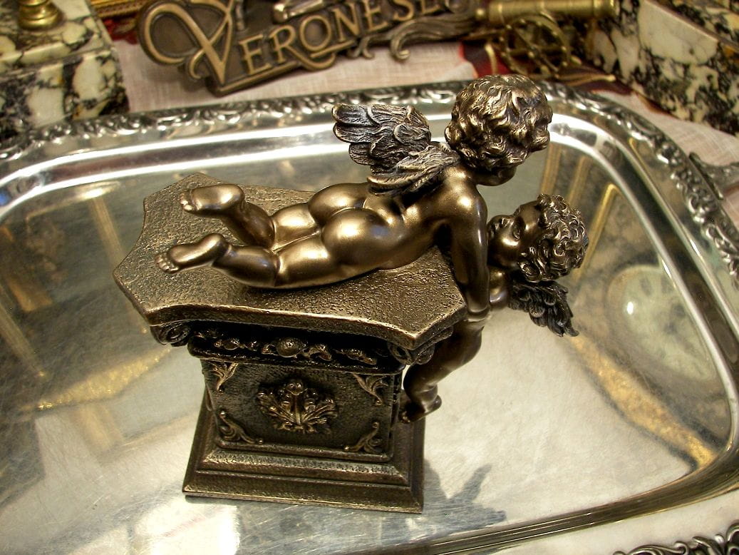 Zapraszam do zakupu wspaniałego zegara z dwoma psotnymi amorkami ,stylizacją nawiązującego do stylu barokowego .Przedmiot zachwyca precyzją wykonania i urokiem. Przedmiot znacznie lepiej wygląda w naturze .Marka Veronese gwarantuje jakość i wygląd. Całość wykonana z konglomeratu żywicy i minerałów, ręcznie malowana .