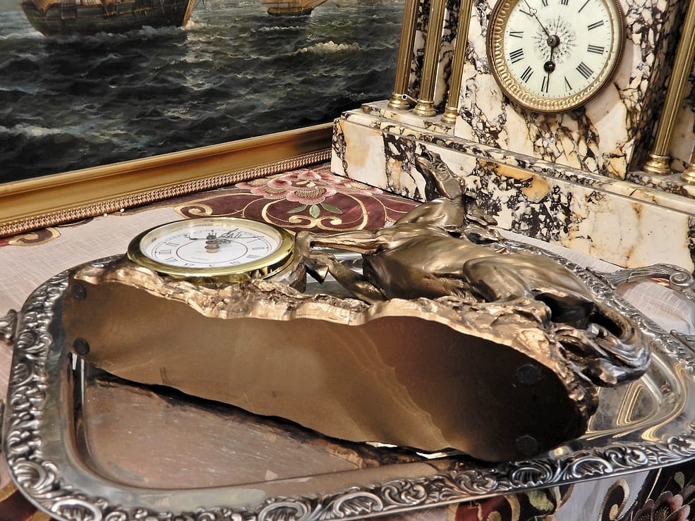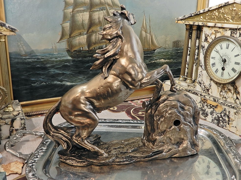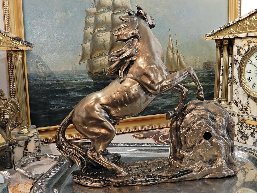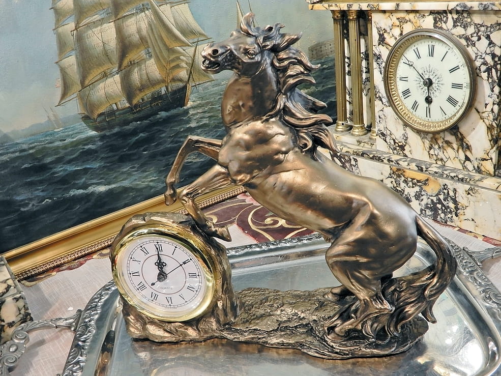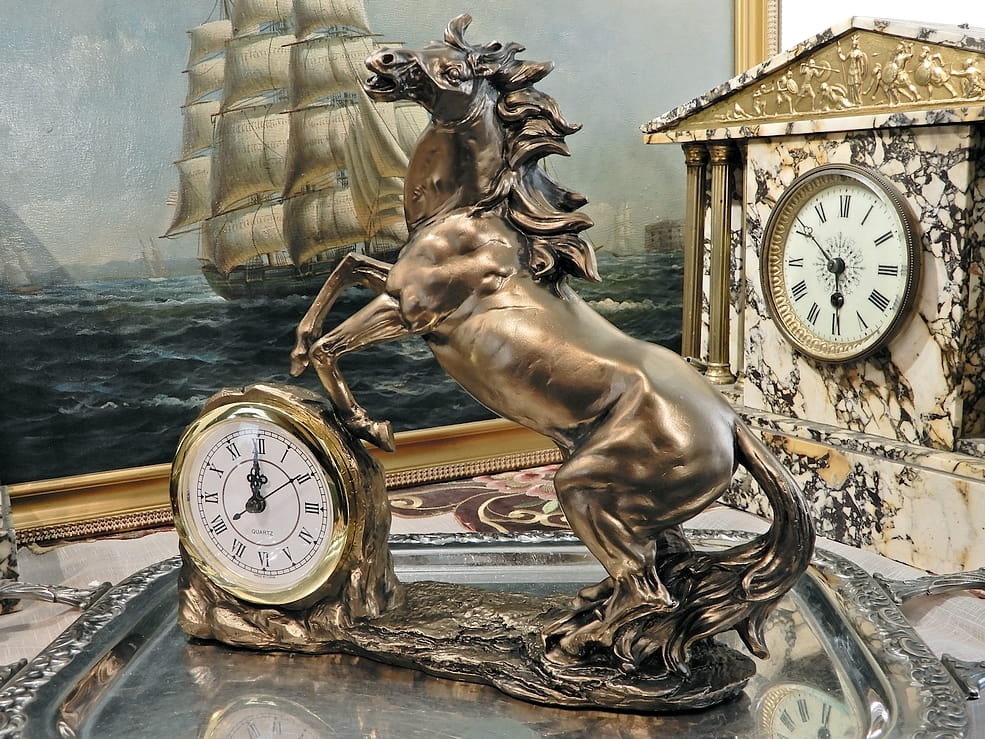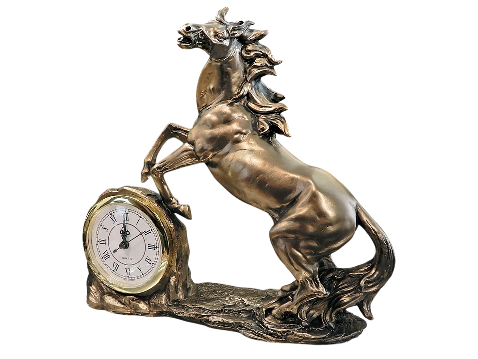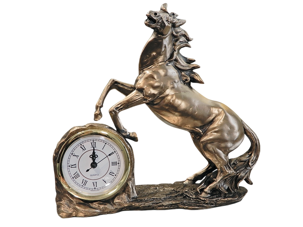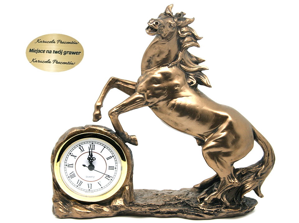 Zapraszamy do zakupu zegara z figurką pięknego ogiera, w stójce.